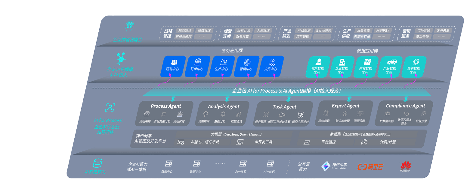 多多28问学智车解决方案是一套基于AI技术的汽车行业智能化系统,,覆盖从底层算力到顶层AI应用的全栈方案。。方案由算力层、、模型层和应用层组成:算力层,,方案支持多种一体机配置,,,具备云端灵活部署、、、、多云适配以及动态优化计算资源的能力;模型层,,,,多多28问学平台版提供了企业级AI应用一站式构建与管理平台,,支持基于后训练强化技术的汽车企业专属模型的训练、、、评测和运营;应用层,,,多多28问学DeepSeek版提供包括超级员工、、、智能招采、、、、智能营销、、智能客服、、AI for BI等一系列解决方案,,,,可助力汽车行业实现数字化转型,,,,让管理更智能、、响应更敏捷。。